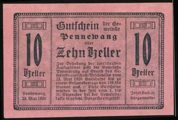 Notgeld Pennewang 1920, 10 Heller, Kirche