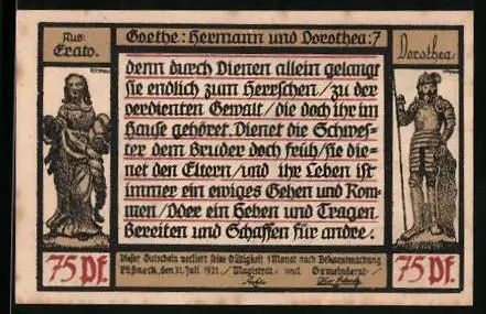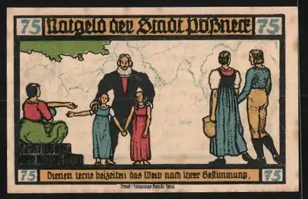Notgeld Pössneck 1921, 75 Pfennig, Ratsherr, Ritter