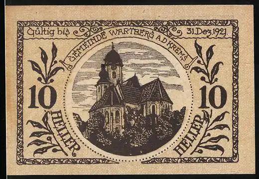 Notgeld Wartberg a.d. Krems 1921, 10 Heller, Partie an der Kirche