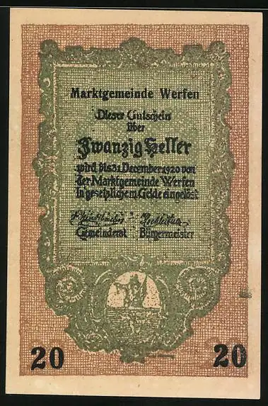 Notgeld Werfen, 20 Heller, Ortspartie mit Kirche