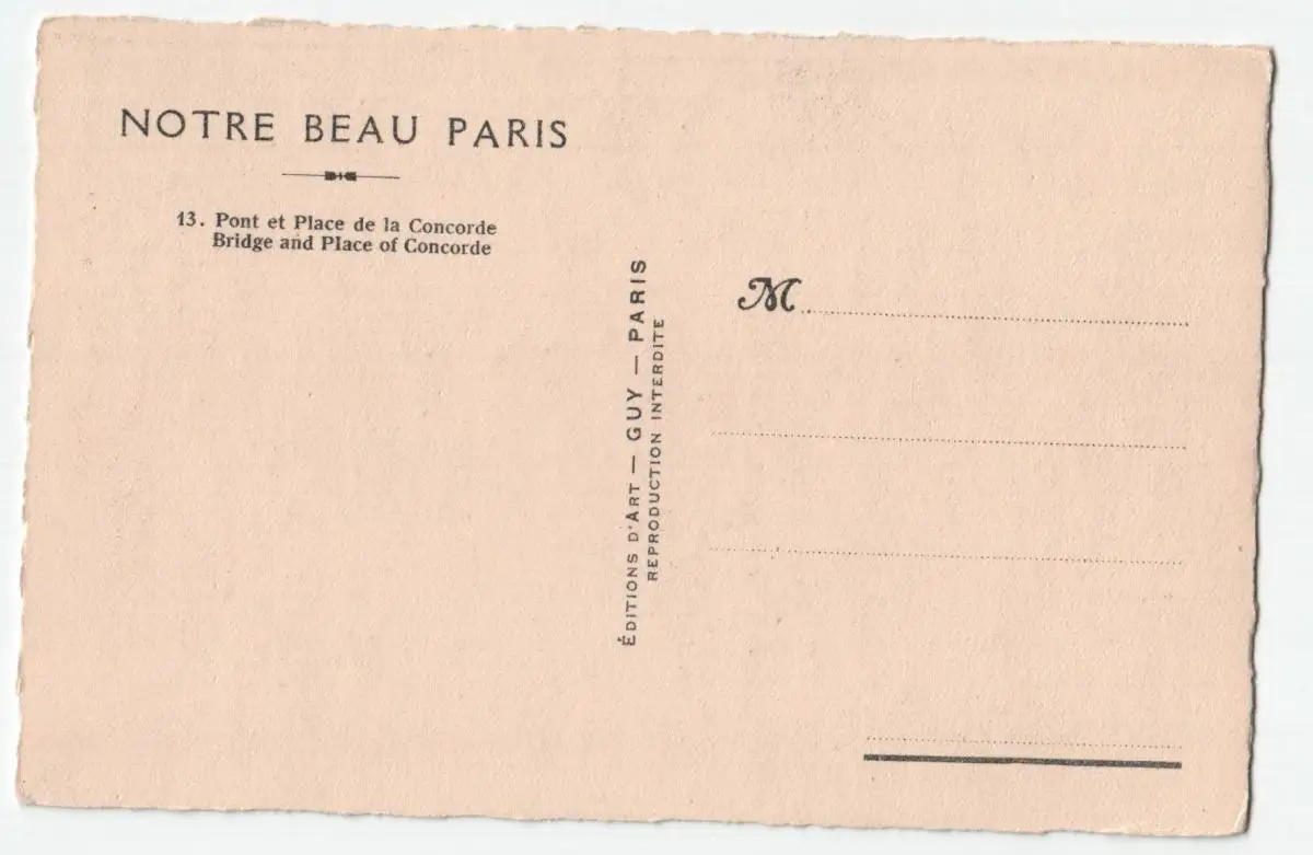 Notre Beau Paris. Pont et Place de la Concorde. Bridge and Place of Concorde.