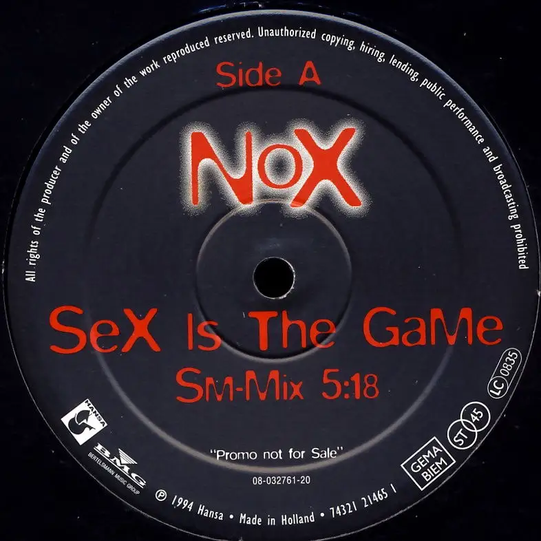 12" Maxi Nox - Sex Is The Game, Promo, Einheitscover der Plattenfirma, Zustand Platte M- Hülle M-; Made in Netherlands 1994 Hansa 74321 21465 1, Tracks SM-Mix 5:18, A Sin 4:46, Ordinary Vers. 3:46
