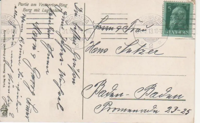 Nürnberg Partie am Vestnertor mit Burg gl1913 216.873