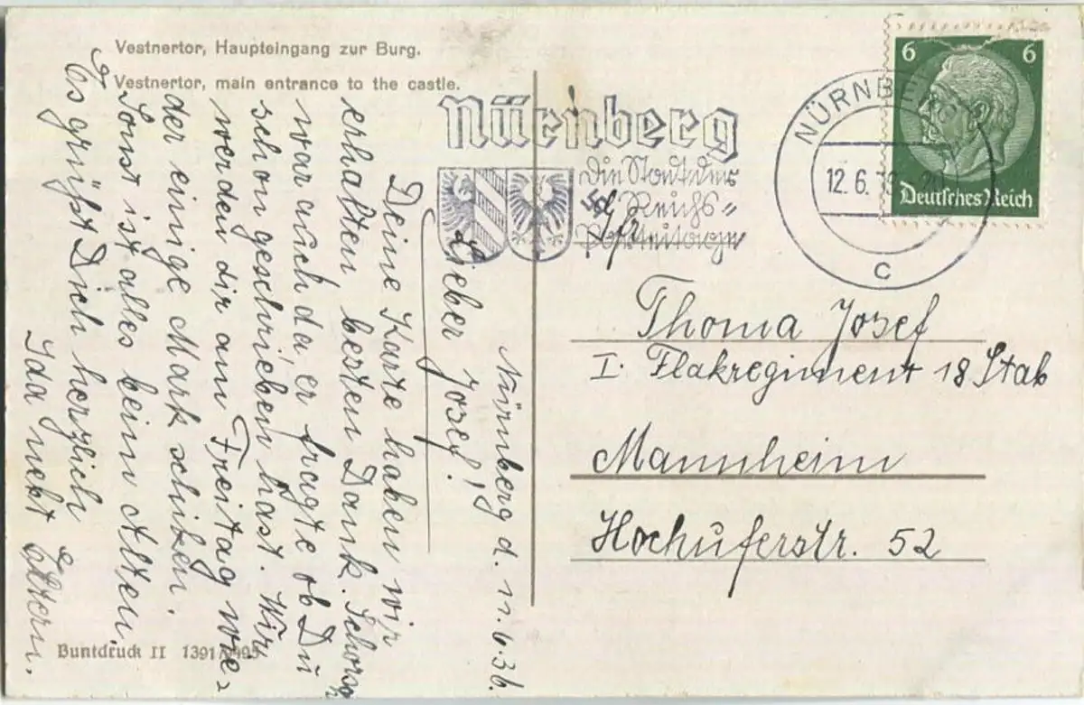 Nürnberg - Vestnertor - Hauteingang zur Burg - Eckbug oben rechts (G13342) gel. 1936