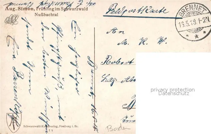 Nussbach_Schwarzwald Fruehling Nussbachtal Kuenstler August Simon Nussbach Schwarzwald postalisch gelaufen 1918 Erhaltung siehe scans [KathaD81] Kathoren