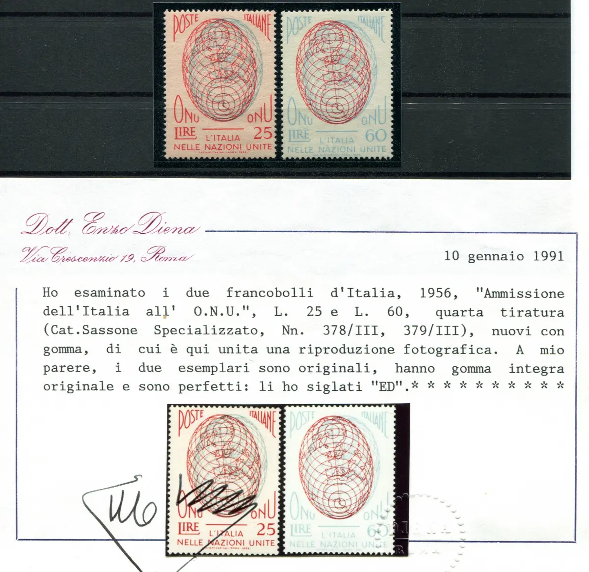 O.N.U. Serie der IV. Auflage Vollgummi - O.N.U. n. 806/807 wunderschöne Serie der IV. Auflage (Sächsische Spec. n. 806/II - 807/II) - Schön und sehr selten - Zert. ED Cod. 665/13