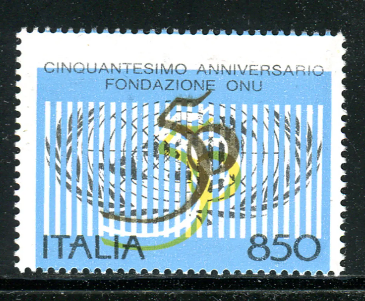 O.N.U. Zahnvielfalt und verschobene Farben Vollgummi - O.N.U. 850 Lire Nr. 2146 mit vertikal versetzter Verzahnung und Farben (Sass. spec. Nr. 1780 Ea) - Kat. euro 185 n. 654/6