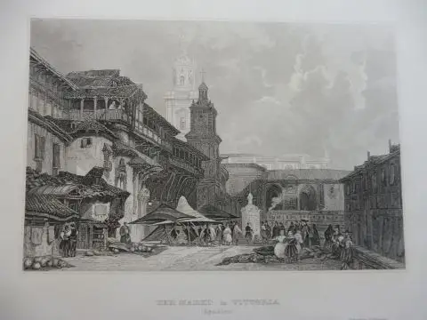 Titel: ORIGINAL- STAHLSTICH : DER MARKT in VITTORIA (Spanien) *
