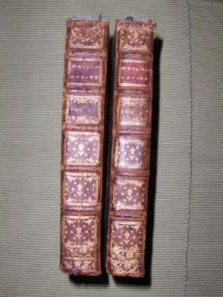 Erstauflage der Ausgabe / Premiere Edition de la Traduction. (Band I) : Bll. + (Vortitelblatt ohne Text fehlt) + Titelblatt mit Allegorien-Stich (etwas Fingerfleckig) + 2 Frontispiz-Stahlstichen (Ovid u. Fontanelle-Portraits) + 7 Kupferstichen-Tafeln (gut erhalten insges.) / (BAND II) : Titelbllatt (etwas grösser. Flecke) + 1 Stich-Tafel mit 1 Flecke + 7 Kupferstichtafeln. insgesamt mit 17 Graphiken von Zocchj *. Buchblöcke etwas gelockert u. (wie erwähnt) am Anfang von Bd. II eine gröss. unschön. Flecke. Bon etat des gravures, assez "libertines" d`ailleurs ! Gr.-8°, O(Braun)-GanzLeder der Zeit (Tout cuir) mit Goldgepr.-Rückentitel u. Floral.-Ornamente, beides ober.-Kapiteln mit fehlt. Teile d. Leder (Bd. I mit ca 1cm - Bd. II mit ca 2 cm), unter.-Kapiteln etwas lädiert. Einbände berieben, etwas ausgekratzt, Kanten u. Ecken berieben oder bestossen. GanzRotschnitt. Kopfschnitt nachergraut. Zustand (besond. d. Kapiteln u. Titelbll. v. Bd. II) im Preis berücksichtigt. Akzeptabel. Prix special selon etat du livre (Reluire et quelques gravures tachees). Foto möglich / Photo possible