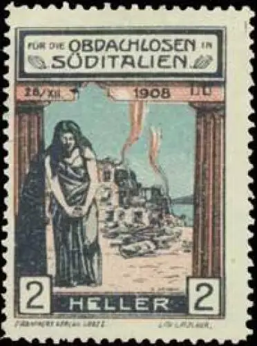 Spendenmarke für die Obdachlosen in Süditalien, Erdbeben, Italien, Größe/Zustand: 4x3 , guter Zustand, Original alte Reklamemarke die seinerzeit für die Werbung benutzt wurde