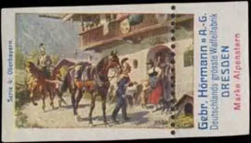 Serie 4, Deutschlands grösste Waffelfabrik, Marke Alpenstern, Größe/Zustand: 3x5 , Fehldruck, guter Zustand, Original alte Reklamemarke die seinerzeit für die Werbung benutzt wurde