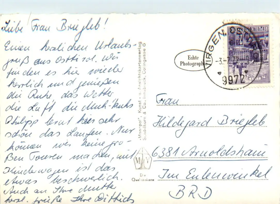 Ein Angebot in Ansichtskarten Tirol - 68.339 weitere Angebote in dieser Kategorie