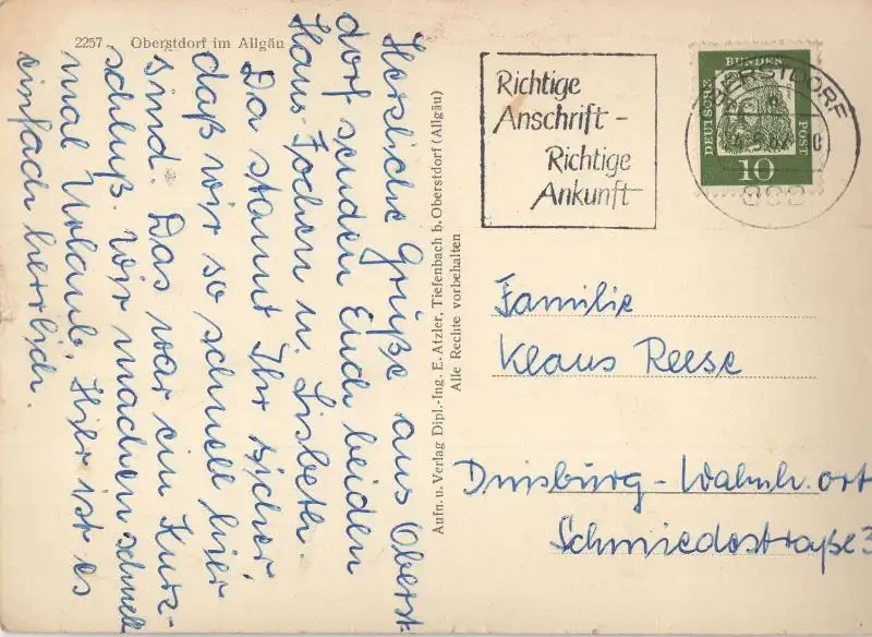Postleitzahl:87561 (neu) / W 8980 (alt)