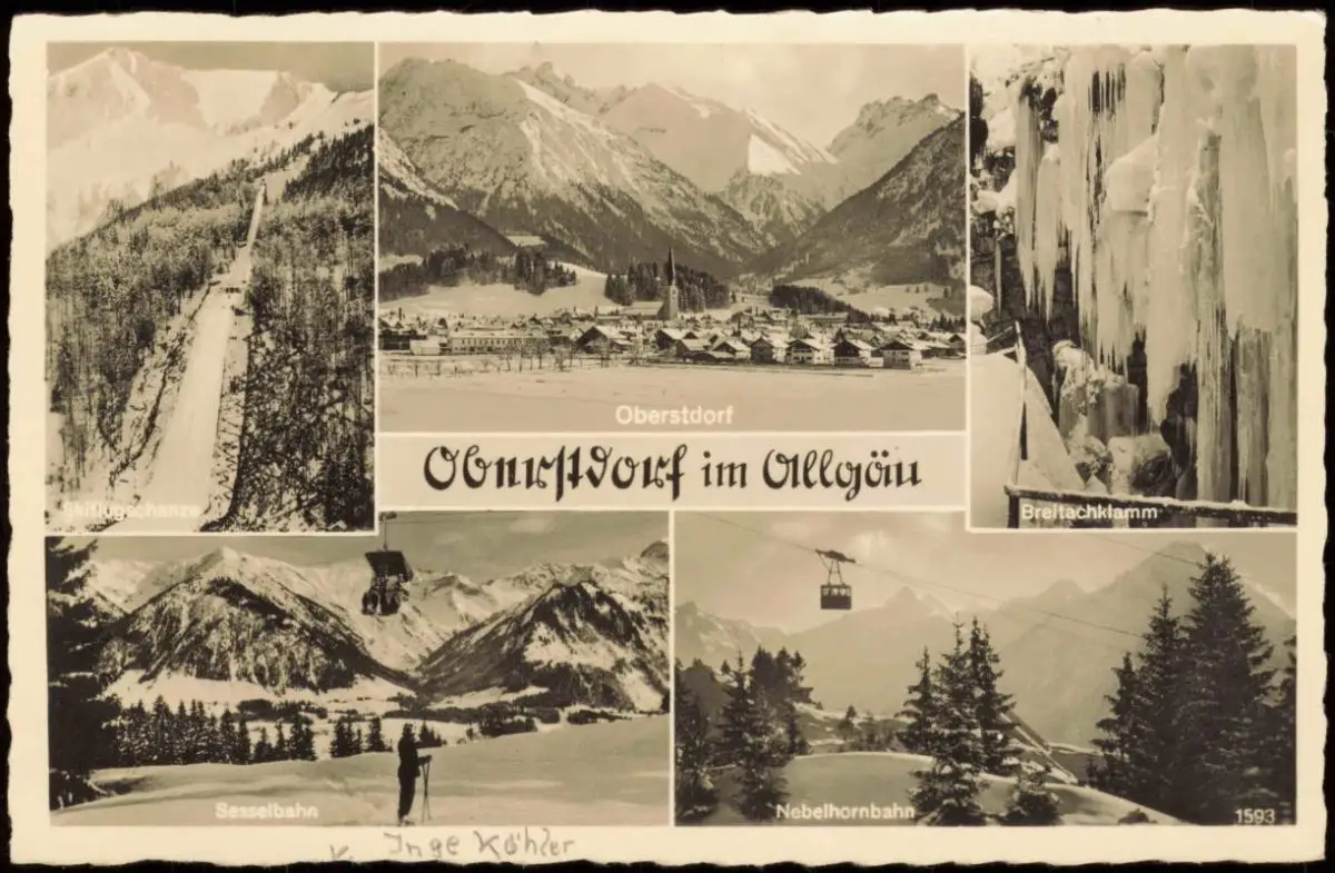 Oberstdorf (Allgäu) MB: Nebelhornbahn, Sprungschanze Winteransichten 1959