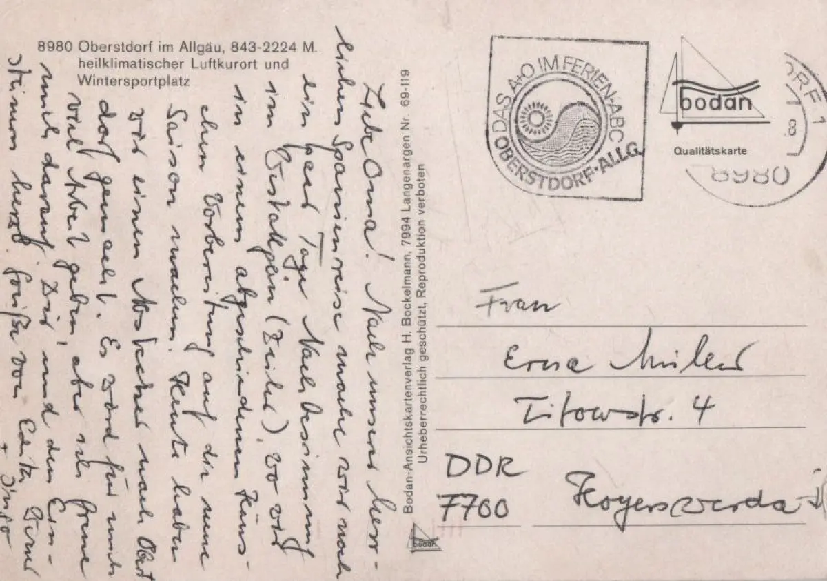 Postleitzahl:87561 (neu) / W 8980 (alt)