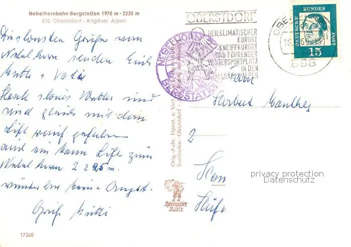 Oberstdorf Nebelhornbahn Bergstation Oberstdorf postalisch gelaufen 1965 Erhaltung siehe scans [WerneD78] WernPID7