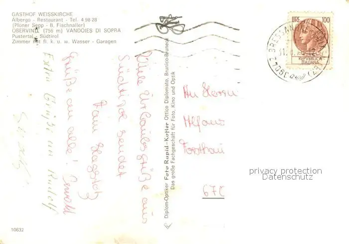 Obervintl_Pustertal_Suedtirol Gasthof Weisskirche Obervintl_Pustertal postalisch gelaufen 1976 Erhaltung siehe scans [FriedD77] Frierer