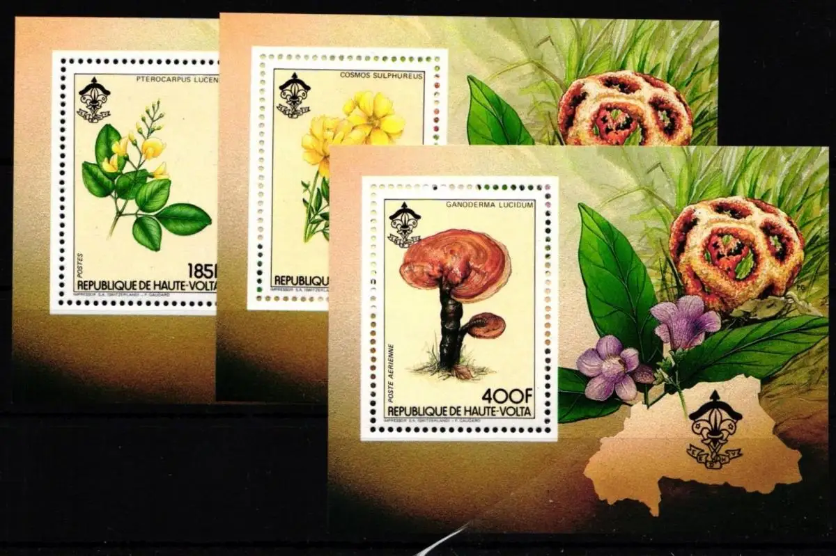 Obervolta 951 und 953 und 955 postfrisch Einzelblöcke / Pilze #HR971