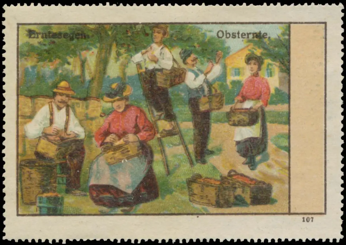 Erntesegen, Ernte, 107, Größe/Zustand: 5x8 , guter Zustand, Original alte Reklamemarke die seinerzeit für die Werbung benutzt wurde