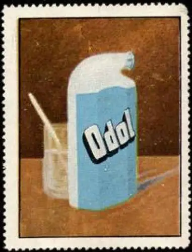 Pflege für Zahnfleisch, Zähne, Mund und Rachen. , Größe/Zustand: 5x4 , beschädigt, Original alte Reklamemarke die seinerzeit für die Werbung benutzt wurde