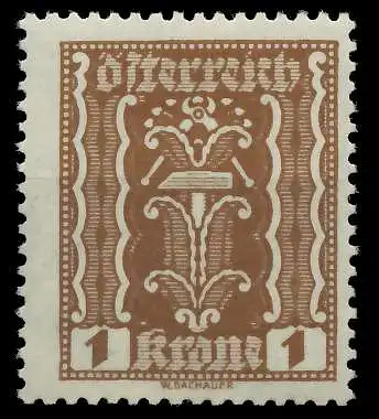 1 Kr. Wert aus der Freimarkenausgabe von 1922/1924, Kornähre, Hammer und Zange