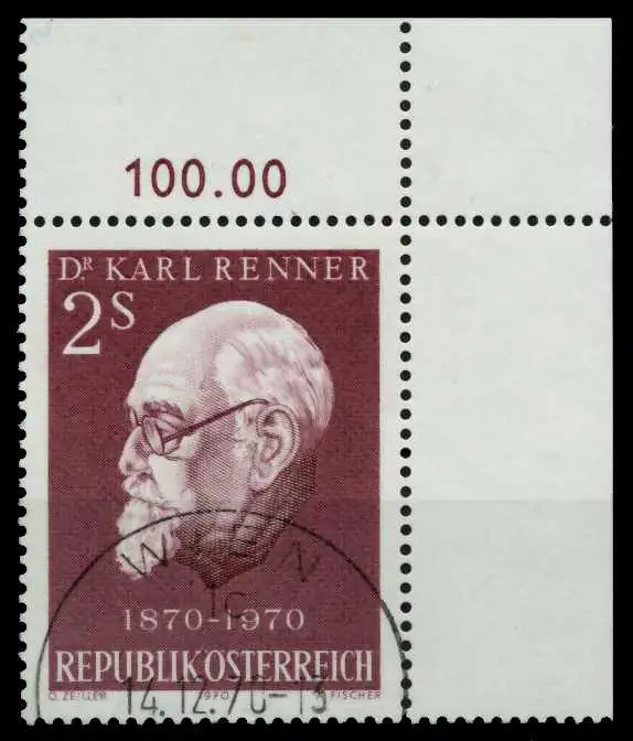2S Wert aus der Ausgabe Karl Renner (Papier u. Gummi weiß)