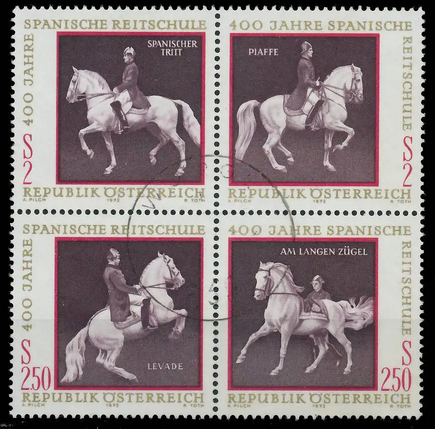2S+2,50S Werte aus der Block-Ausgabe 400 Jahre Spanische Hofreitschule (MichelNr.: 1395, 1396 1397, 1398)