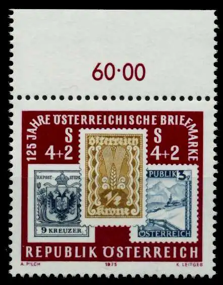 4S + 2S Wert aus der Ausgabe 125 Jahre Österreichische Briefmarken