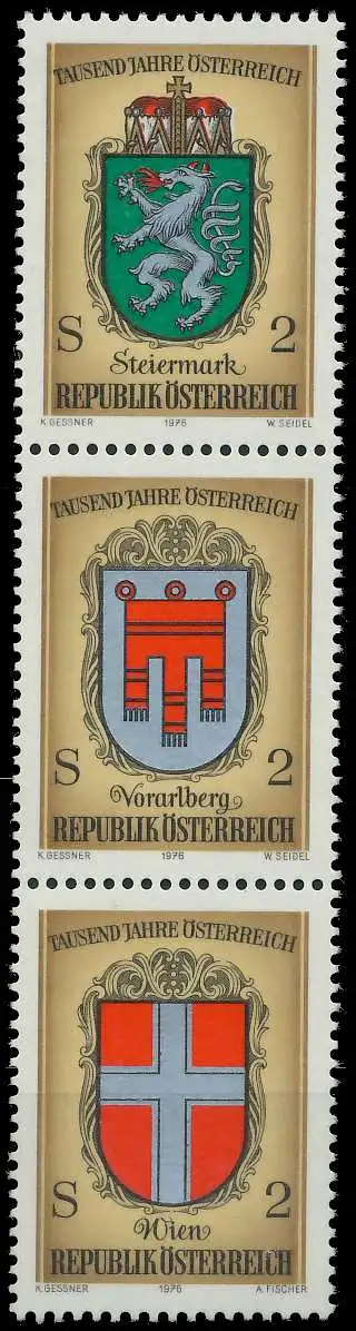 2+2+2S Wert aus der Block-Ausgabe 1000 Jahre Österreich, Bundesländer, Wappen (MichelNr.: SZdh, 1523, 1526, 1529)
