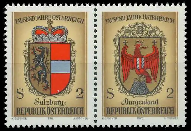 2+2S Wert aus der Block-Ausgabe 1000 Jahre Österreich, Bundesländer, Wappen (MichelNr.: WZde, 1528, 1529)