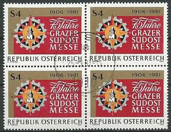 ÖSTERREICH 1981 Mi-Nr. 1682 Viererblock o used - ABO-Ware
