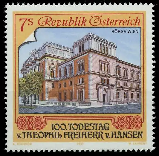 7S Wert aus der Ausgabe 100. Todestag von Theophil Freiherr von Hansen