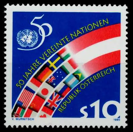 10S Wert aus der Ausgabe 50 Jahre Vereinte Nationen