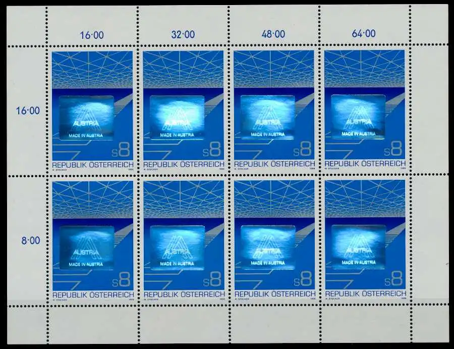 8S Wert aus der Ausgabe Österreichischer EXPORT im Kleinbogen (ÖS 56 = 4 Euro PP)
