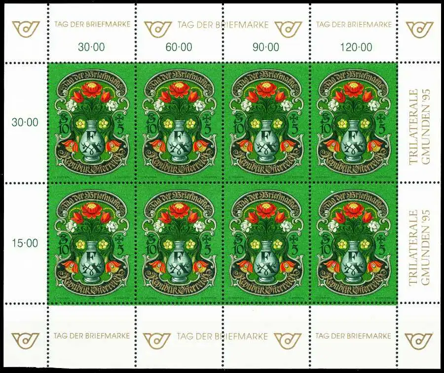 10S + 5S Wert aus der Ausgabe Tag der Briefmarke 1995 im Kleinbogen (ÖS 120 = 9 Euro PP)