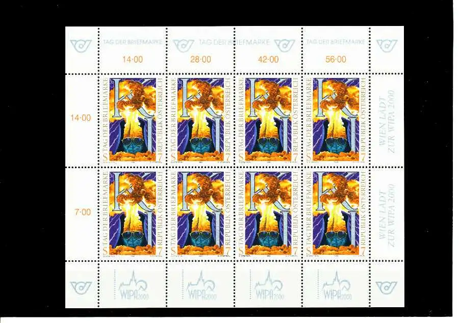 7S Wert aus der Ausgabe Tag der Briefmarke 1999 im Kleinbogen (ÖS 56 = 4 Euro PP)