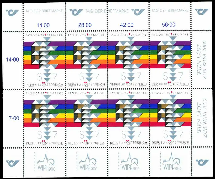 7S Wert aus der Ausgabe Tag der Briefmarke 2000 im Kleinbogen (ÖS 56 = 4 Euro PP)