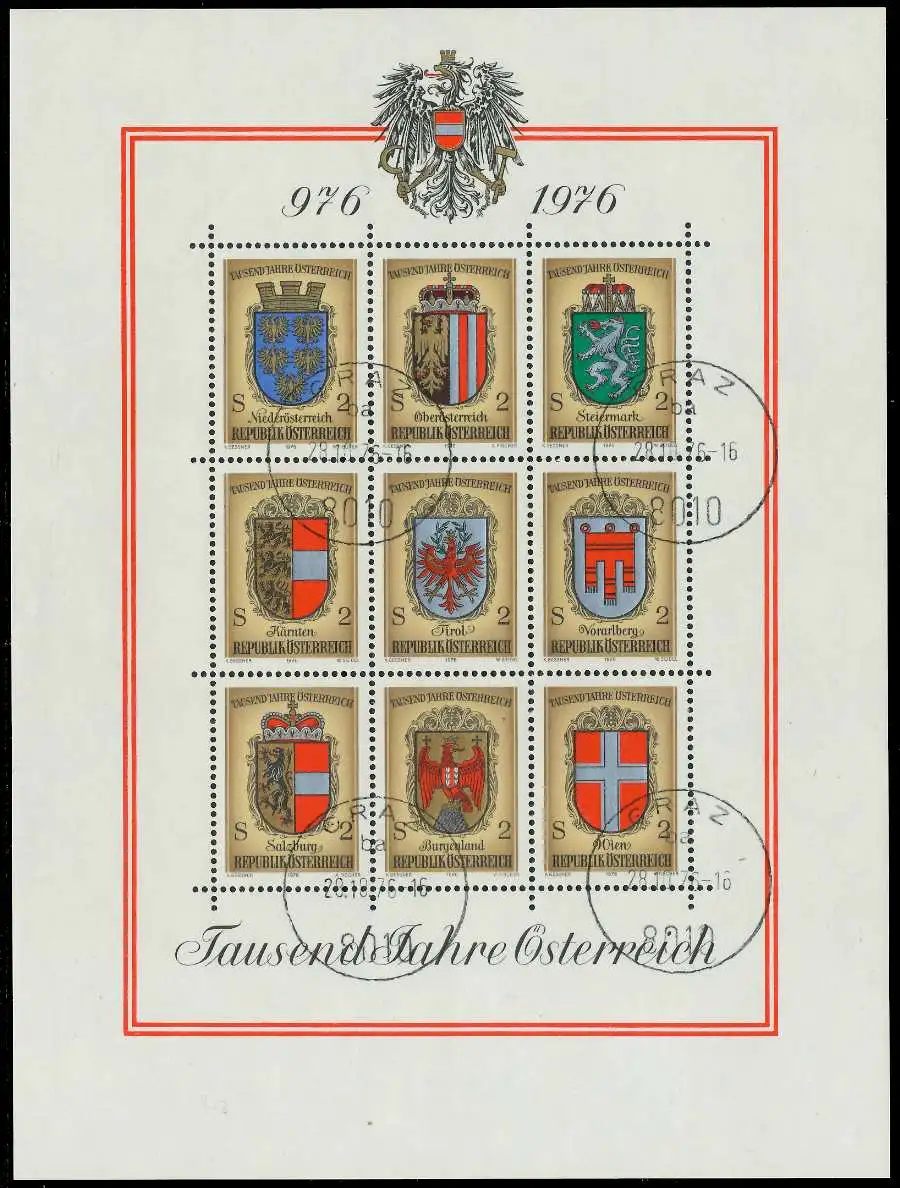 Block-Ausgabe 1000 Jahre Österreich, Bundesländer, Wappen