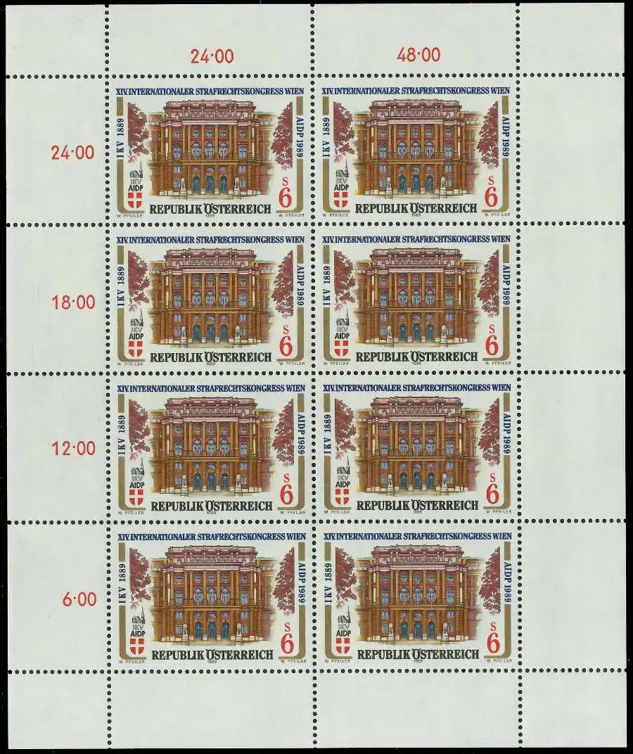 6S Wert aus der Ausgabe Internationaler Strafrechtskongress in WIEN im Kleinbogen (ÖS 48 = 3,50 Euro PP)