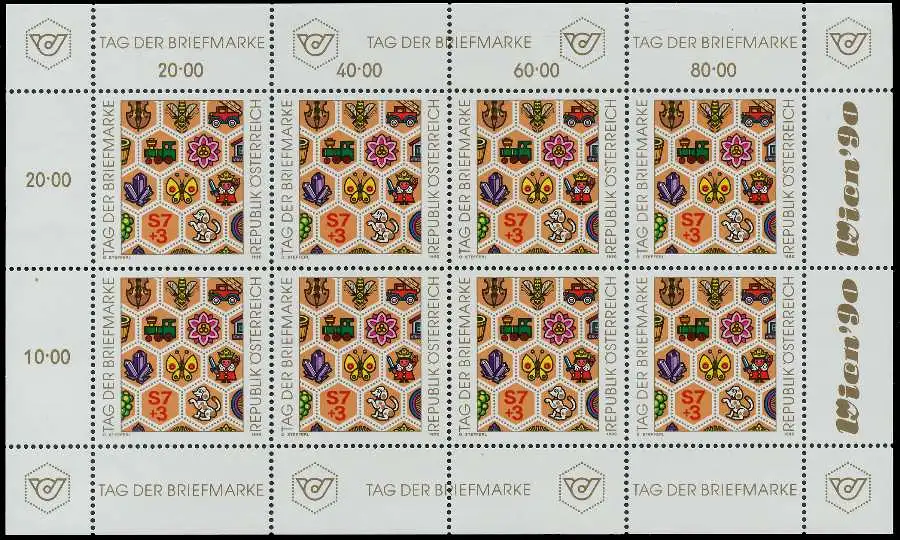 7S + 3S Wert aus der Ausgabe Tag der Briefmarke 1990 im Kleinbogen (ÖS 80 = 6 Euro PP)