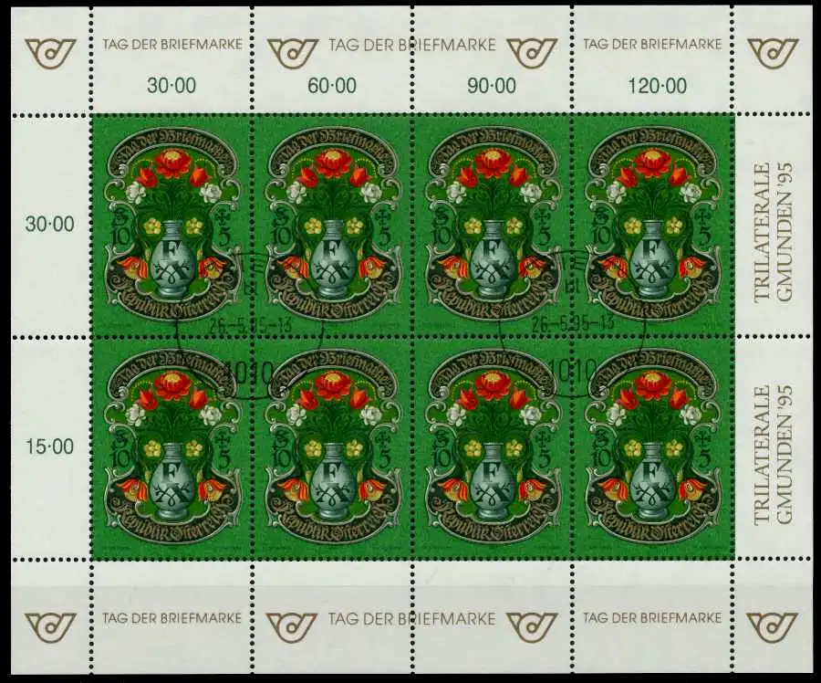 10S + 5S Wert aus der Ausgabe Tag der Briefmarke 1995 im Kleinbogen (ÖS 120 = 9 Euro PP)