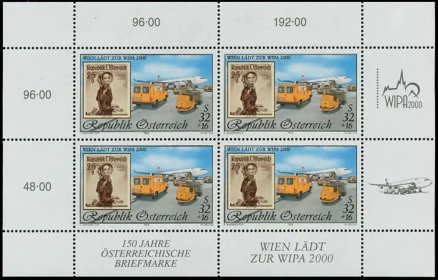 32S + 16S Wert aus der Ausgabe WIPA 2000 mit Jahreszahl 1999 im Kleinbogen