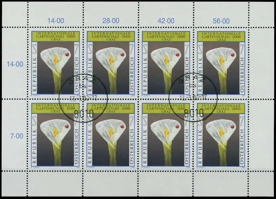 7S Wert aus der Ausgabe Internationale Gartenschau 2000 im Kleinbogen (ÖS 56 = 4 Euro PP)