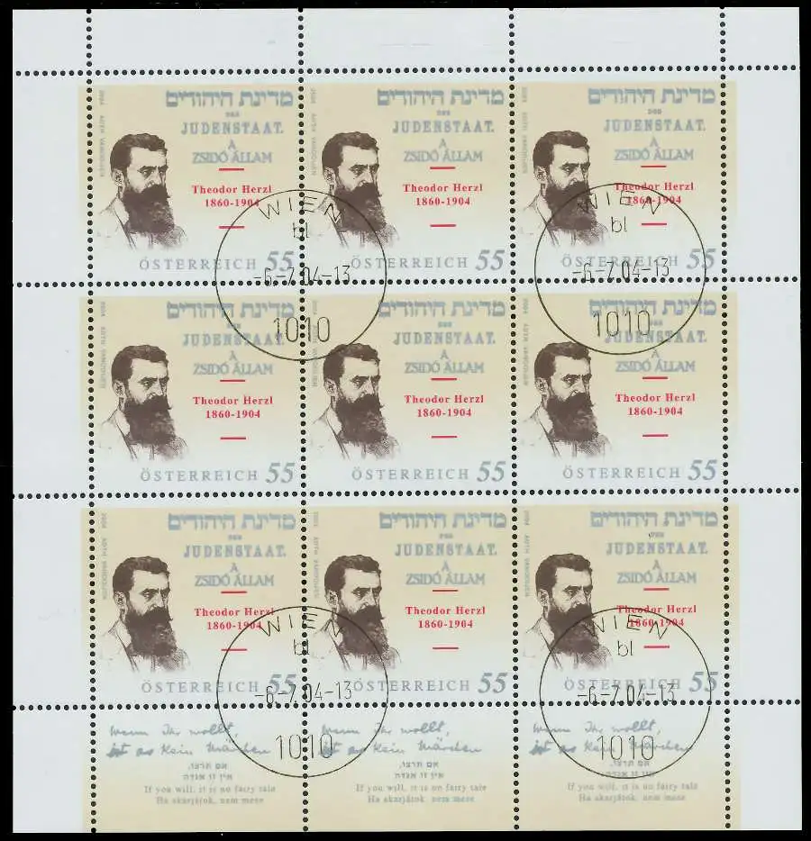 Theodor Herzl 1860 - 1904, Judenstaat, kpl. Kleinbogen mit 9 Marken