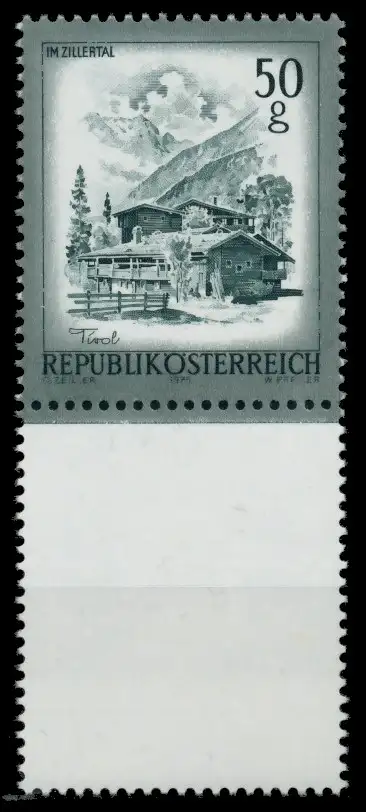 0,50S Wert aus der Freimarken-Ausgabe Schönes Österreich, mit anhängendem Leerfeld unten