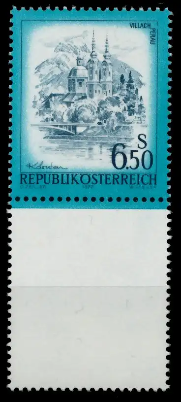 6,50S Wert aus der Freimarken-Ausgabe Schönes Österreich mit anhängendem Leerfeld unten