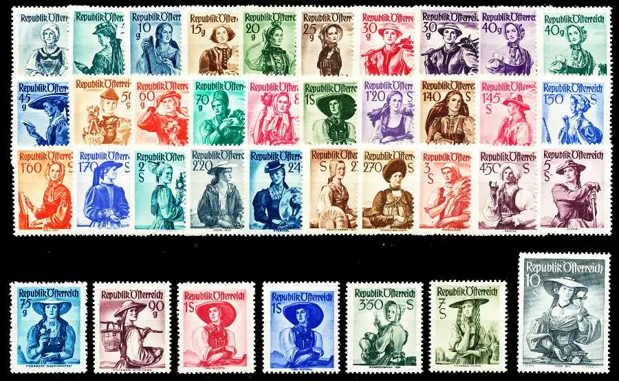 Ausgabe Trachtenserie von 1948-1956, grau/gelbes Papier (37 Werte)