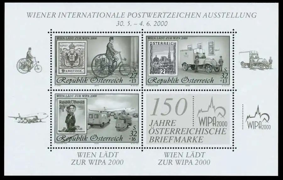 Zusammendruckausgabe als Block zur WIPA 2000 von 2000 im Kleinbogen im Schwarzdruck