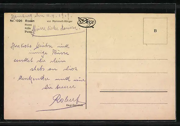 Ölgemälde-Imitations-AK Degi Nr. 1026: Rosen