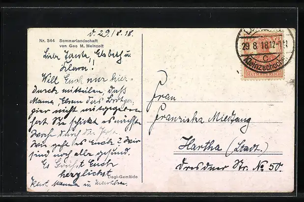 alte Ansichtskarte, gelaufen 1918, guter Zustand